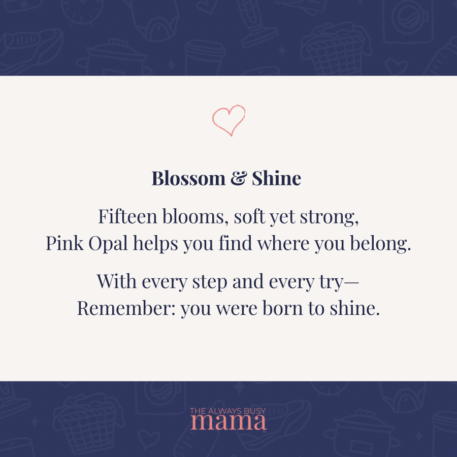 Why We Chose It: At 15, she’s growing into her identity, her confidence, and her voice. Pink Opal supports the blossoming process with grace and groundedness.