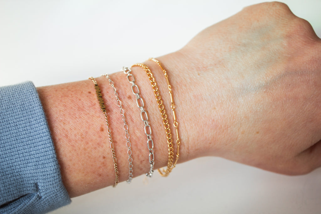 Celebrate the beauty of contrast with the Opposites Attract Bracelet, a dual-chain design that represents the perfect balance of friendship. Featuring a sleek straight-line bar chain paired with a bold curb chain, this piece symbolizes how best friends can be different yet complement each other effortlessly.