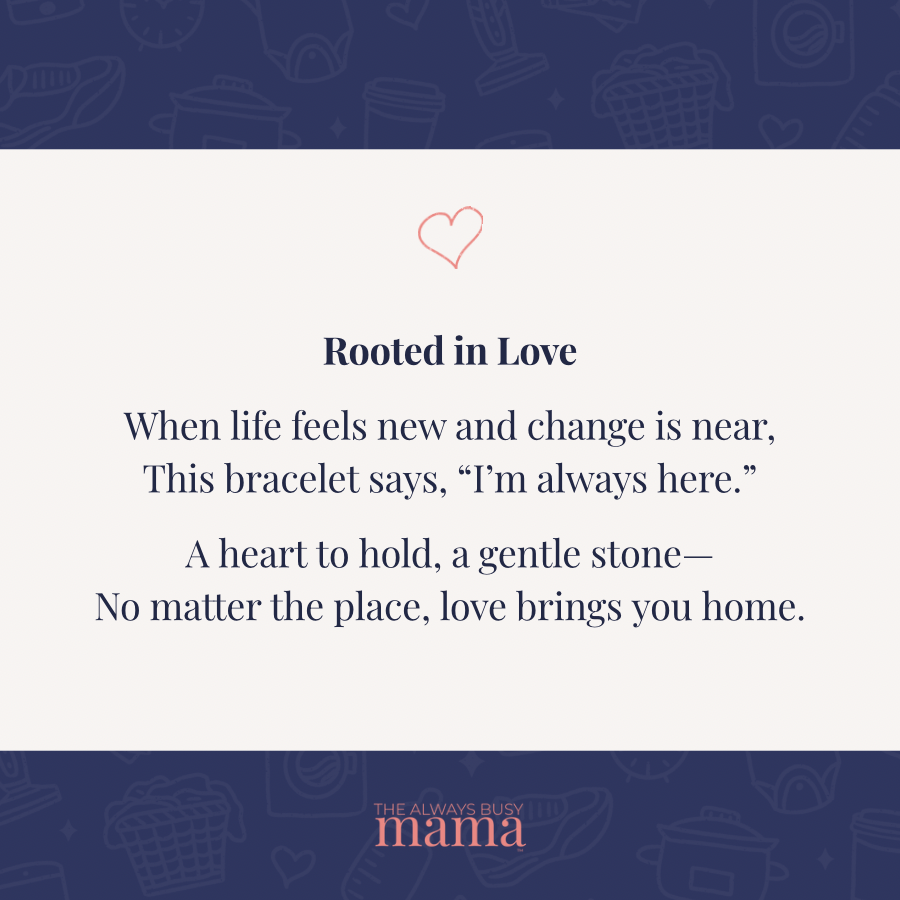 New friends, new faces, new everything — moving is no small milestone. The Rooted in Love Set brings comfort and courage through Rhodonite in Quartz, paired with a heart-shaped Mother of Pearl charm. It’s a meaningful way to say, “You’re brave, you’re loved, and we’re always with you.”