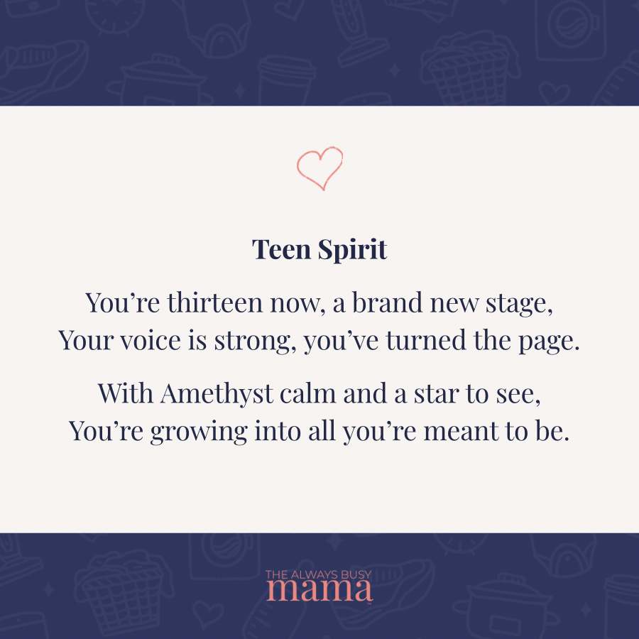 Officially a teen. The Teen Spirit Set honors her growth with the calming strength of Amethyst and a Mother of Pearl star that says, “Shine as only you can.” A gift of love, balance, and encouragement during one of life’s biggest identity shifts.