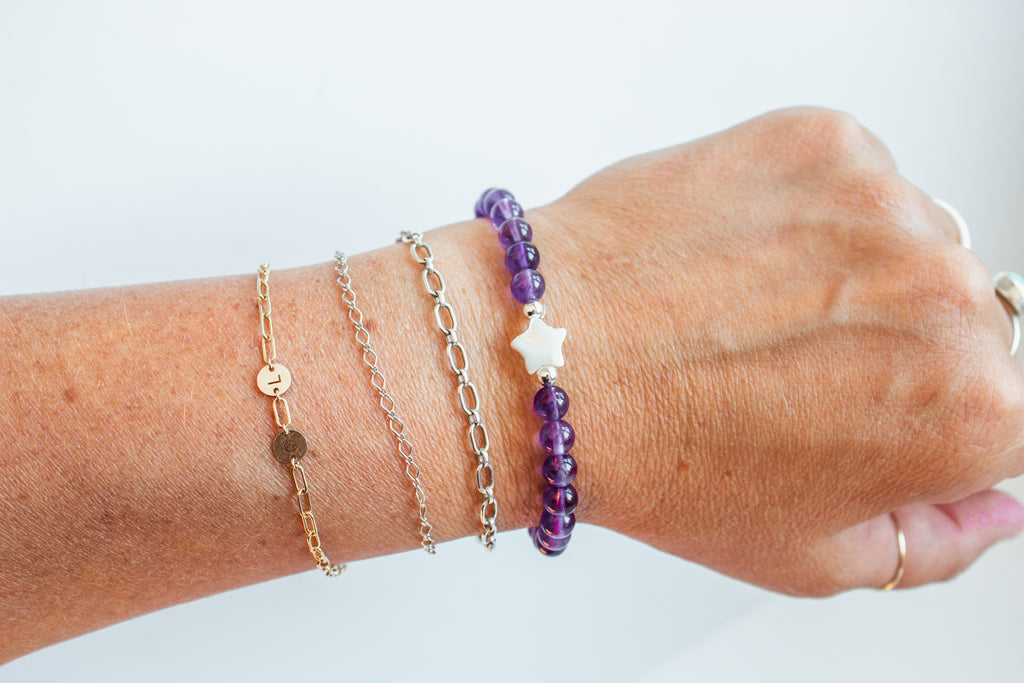 Included: One adult + one teen stretch bracelet with Amethyst and a star charm. Optional birthday message card available.